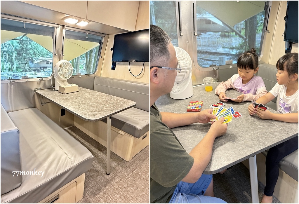車上還有餐桌,因為用餐都是在玻璃屋,所以這區就變成我們的桌遊區啦~