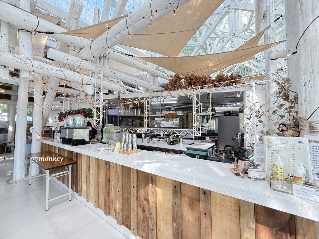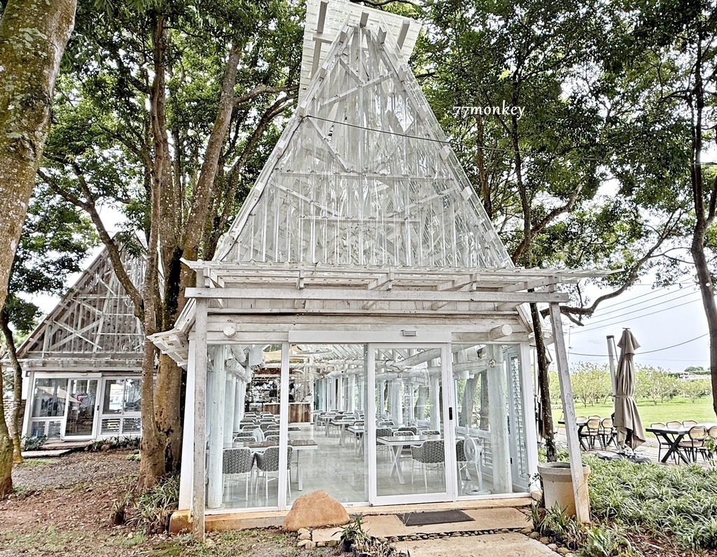 走進小巷清風,你的目光一定會被這棟白色玻璃屋所吸引。這棟純白建築玻璃屋,就是園區附設的「小巷餐廳 Le.Alley Kitchen」。