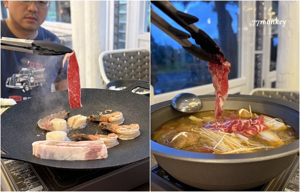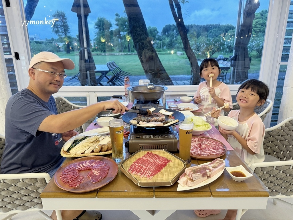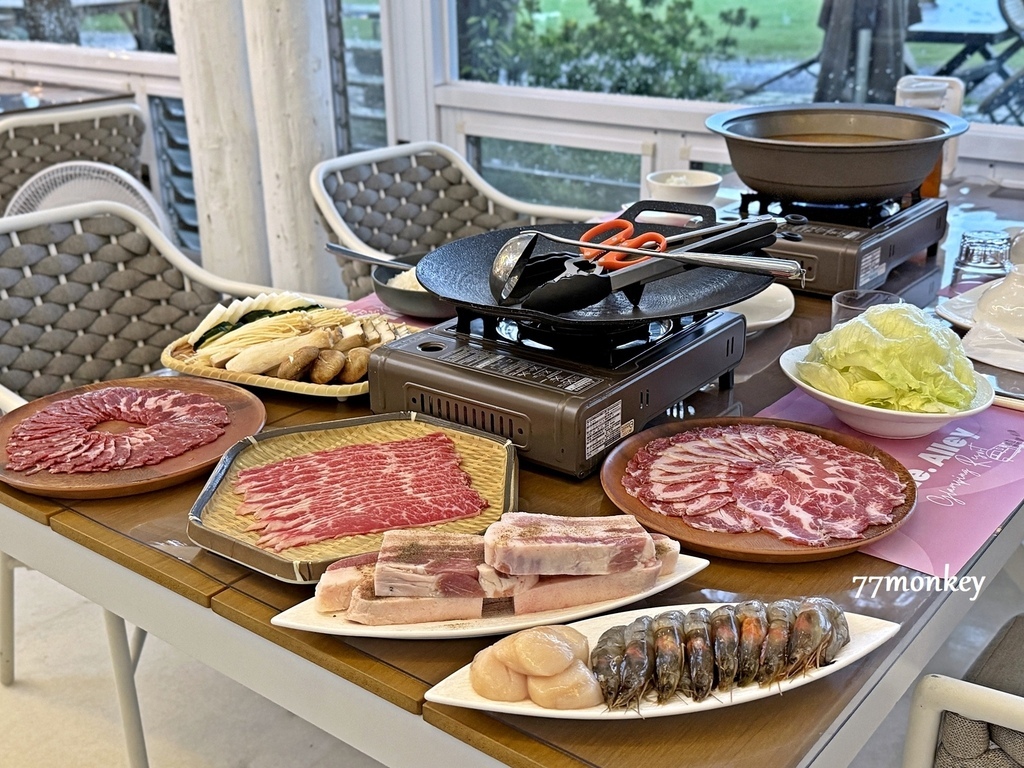 晚餐是無煙燒烤,另外還有火鍋,菜單是由台北紅蝦餐廳主廚設計,多樣化豐富的菜色,搭配在地小農食材,連擺盤超有儀式感!