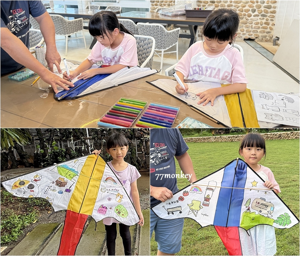 入住期間還有DIY活動,在風箏上畫出屬於自己獨一無二的圖案。小妞開心的說:「以後到公園就有風箏可以玩了!」